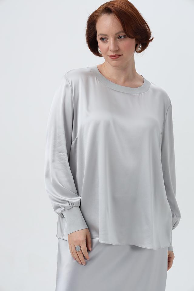 Блузка имеет свободный крой, который не сковывает движений и позволяет создать расслабленный образ. Круглый вырез горловины подчеркивает красоту шеи и декольте. Объемные рукава с манжетами добавляют образу романтичности и изысканности.