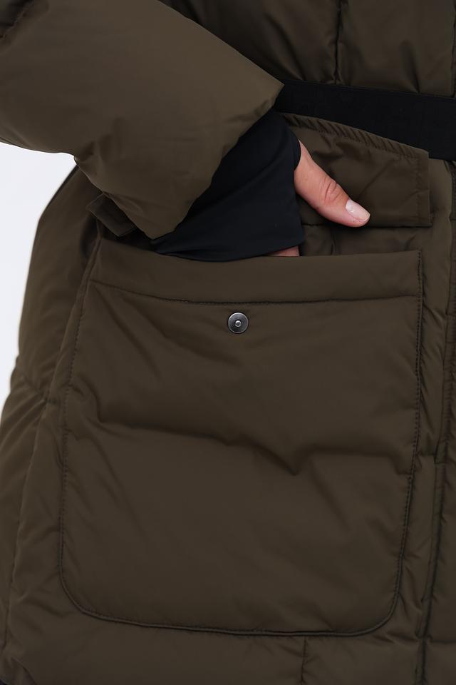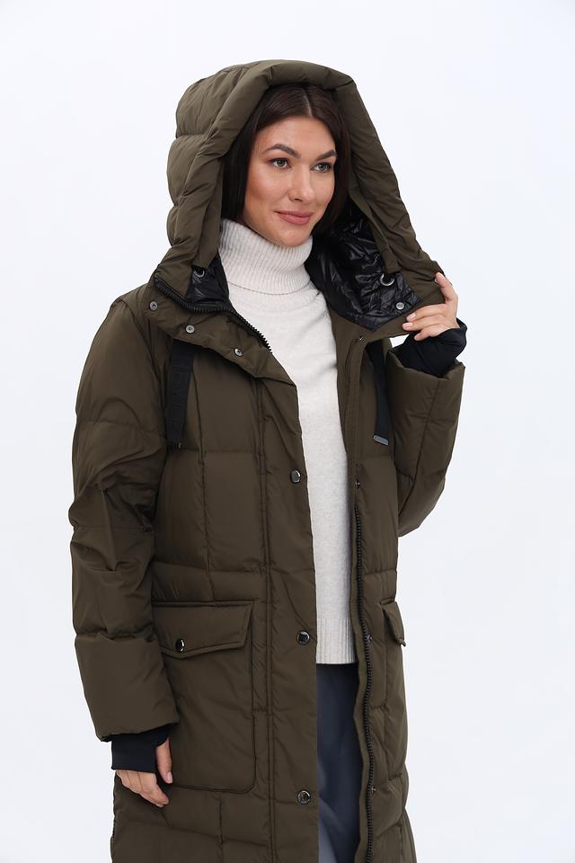 Пальто имеет удобный капюшон, который защитит от ветра и снега. Застежка – молния и кнопки, обеспечивающие надежную фиксацию. Пояс позволяет регулировать посадку по фигуре, подчеркивая талию.