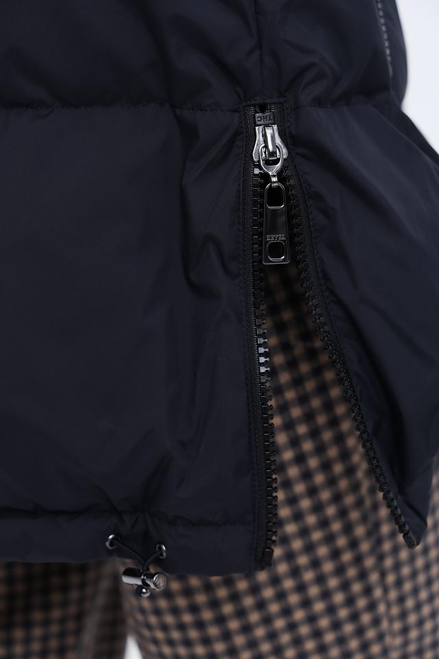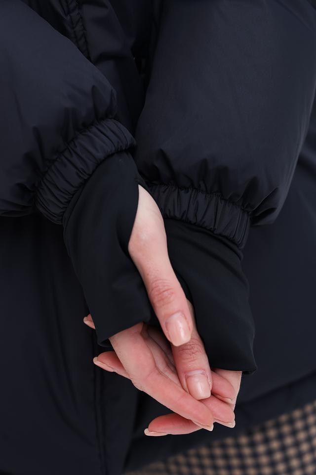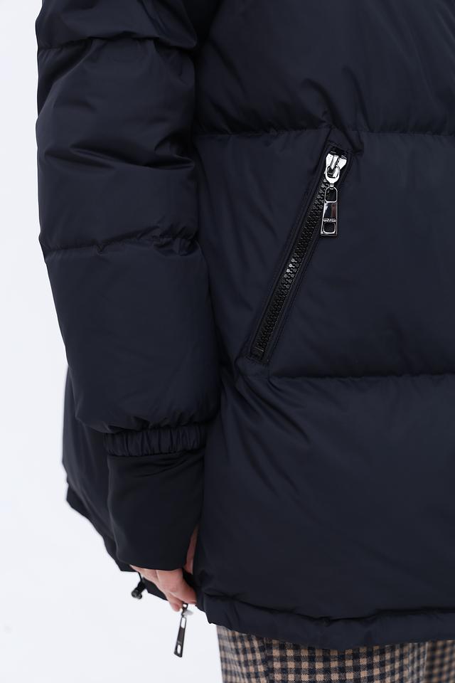Модель оснащена удобными карманами на молнии, в которых можно безопасно хранить необходимые вещи. Рукава куртки имеют манжеты с эластичной лентой, которые плотно прилегают к запястьям, предотвращая попадание холодного воздуха внутрь. Прямой крой обеспечивает свободу движений и комфорт при носке.