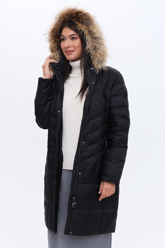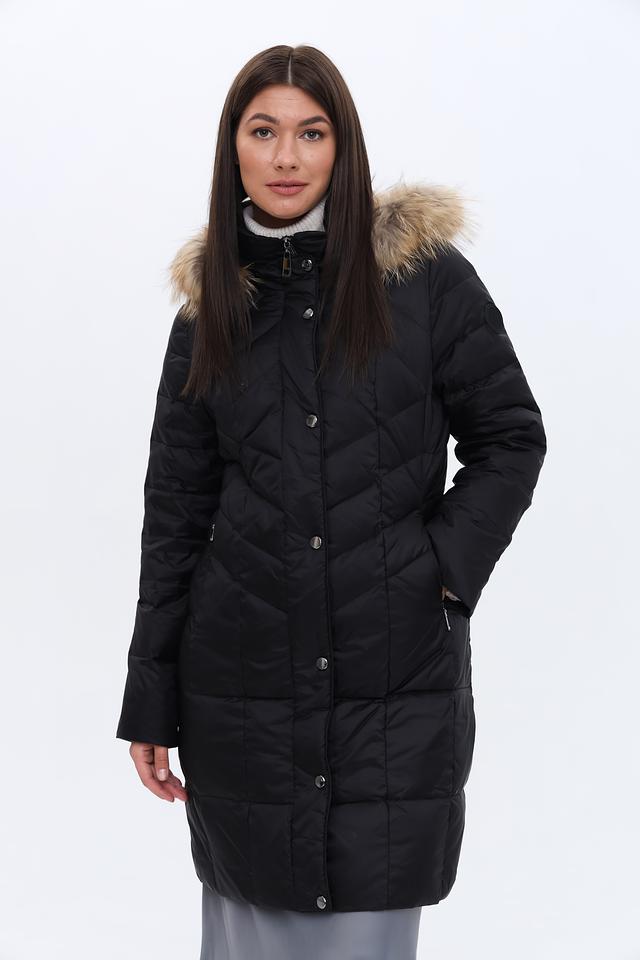 Пальто имеет стеганую фактуру, которая придает ему современный вид и обеспечивает дополнительную теплоизоляцию. Капюшон дополнен съёмной меховой отделкой, которая защитит от ветра и снега. Застежка – молния и кнопки, что обеспечивает удобство и надежность.