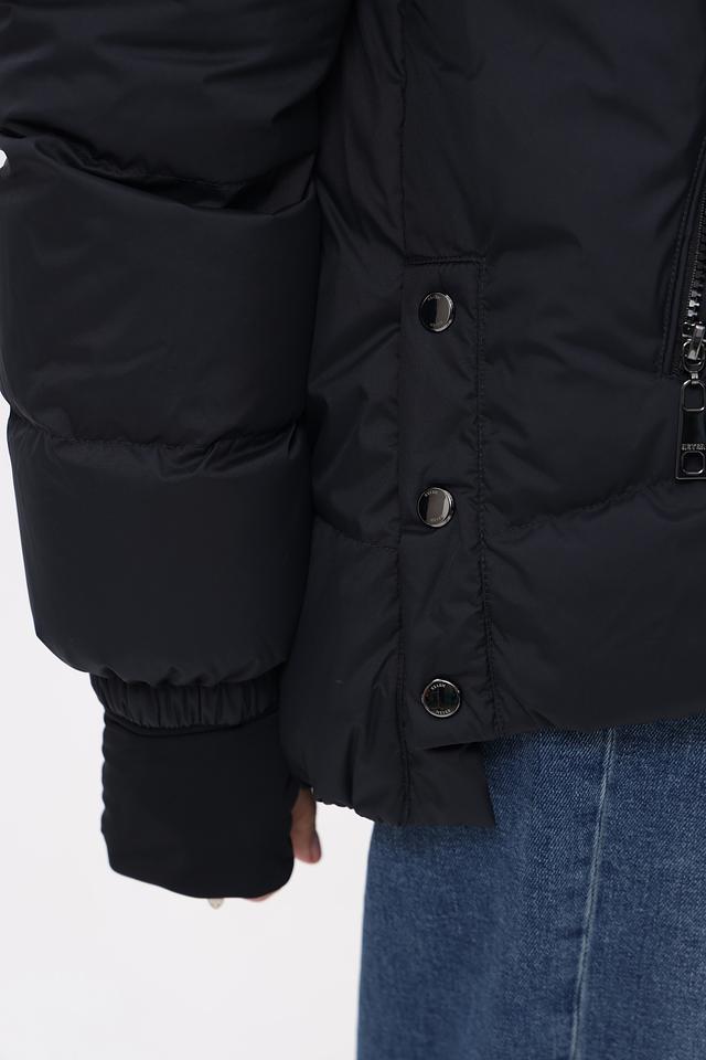 Куртка имеет стеганую текстуру, которая придает ей современный вид. Капюшон обеспечивает дополнительную защиту от ветра и осадков. Удобные боковые карманы позволяют хранить необходимые мелочи.