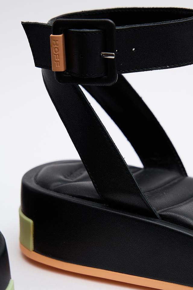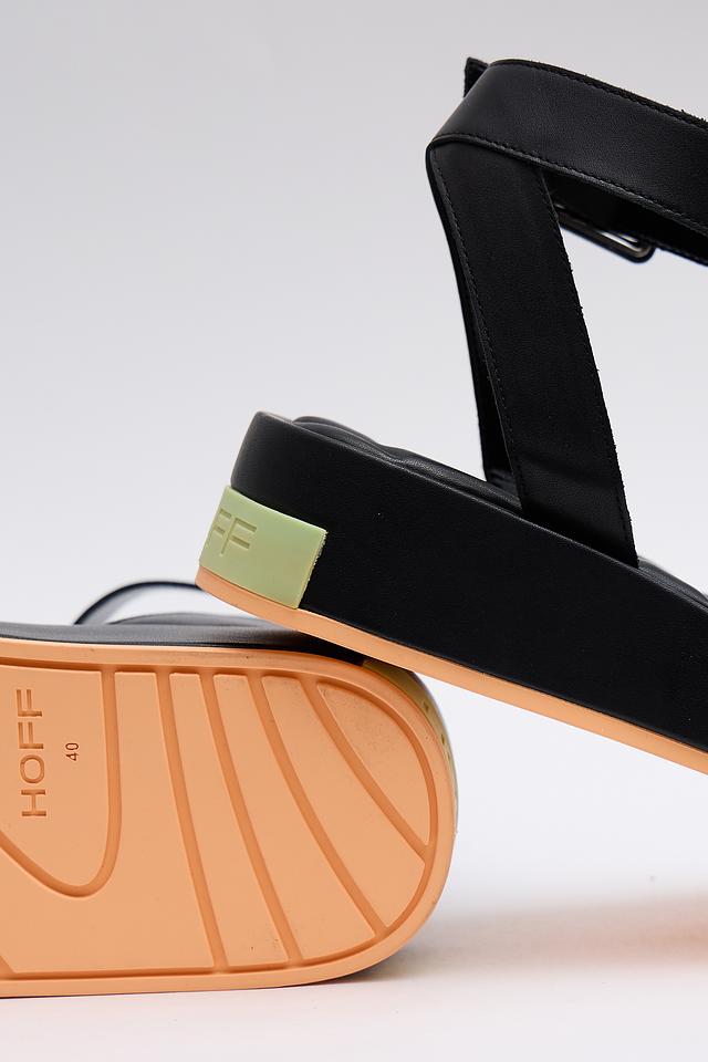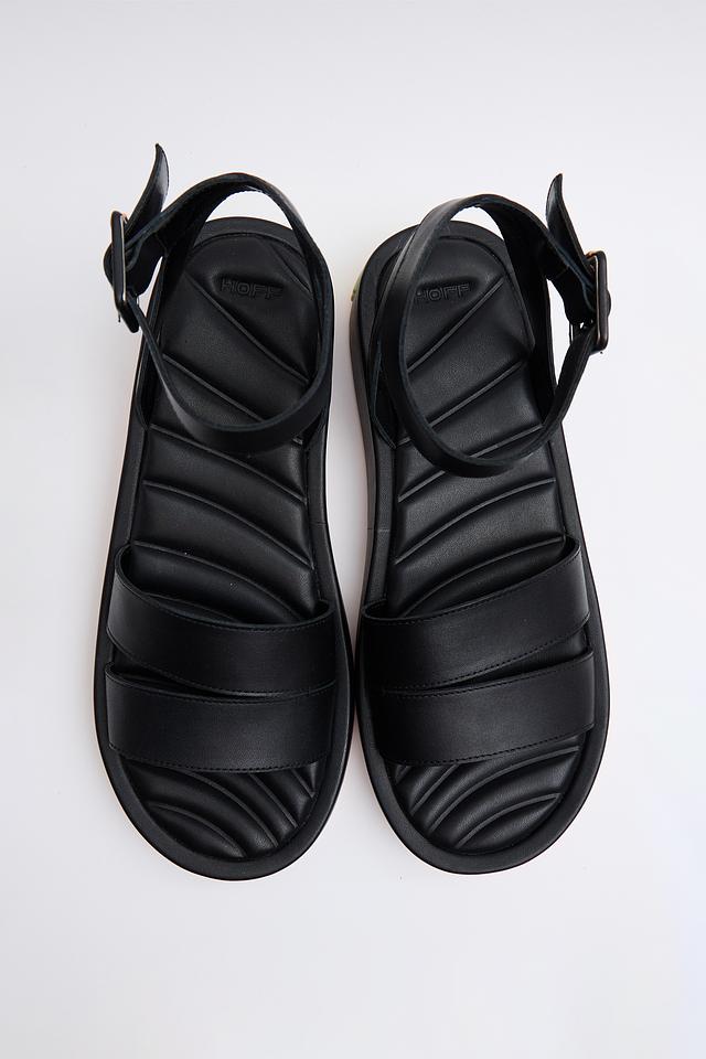 Чёрные кожаные сандалии Hoff с удобной платформой и ремешками. Модель выполнена из натуральной кожи, обеспечивающей комфорт и долговечность. Стильное и практичное решение для летнего гардероба. Состав: кожа 100%, Состав_низ резина 100%, Состав_подкладка полиуретан 100%