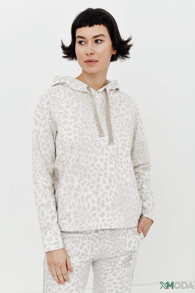 Женский пуловер Monari бежевого цвета с оригинальным леопардовым принтом станет стильным дополнением к вашему гардеробу. Удобный крой и капюшон делают его идеальным для повседневной носки. Состав: полиэстер 50%, хлопок 50%