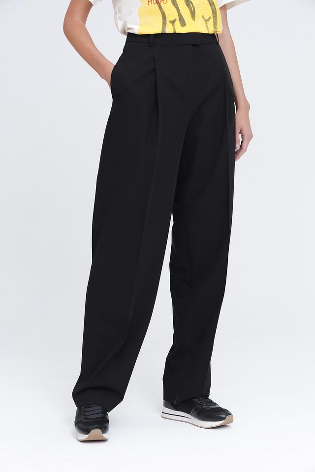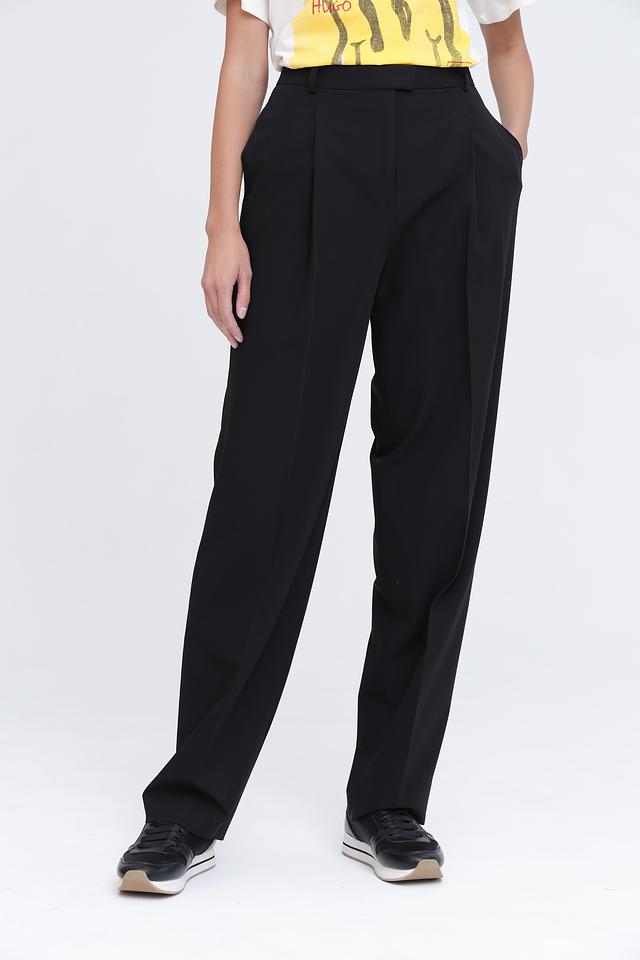 Представляем элегантные женские брюки от Hugo. Эта модель выполнена в классическом черном цвете, который легко сочетается с любым верхом.