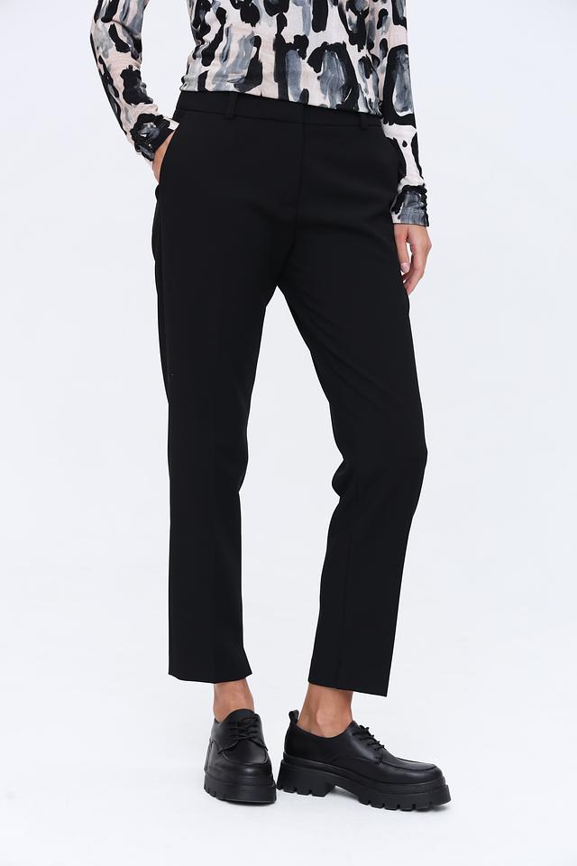 Состав ткани: 64% полиэстер, 31% вискоза, 5% эластан. Такое сочетание материалов обеспечивает приятные тактильные ощущения, хорошую износостойкость и лёгкость в уходе. Эти брюки станут незаменимой частью вашего гардероба, позволяя создавать стильные и элегантные образы.