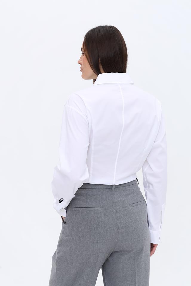 Состав: 97% хлопок, 3% эластан. Рубашка идеально подходит для работы, деловых встреч или повседневной носки. Она легко сочетается с брюками, юбками и джинсами, позволяя создавать стильные и элегантные комплекты.