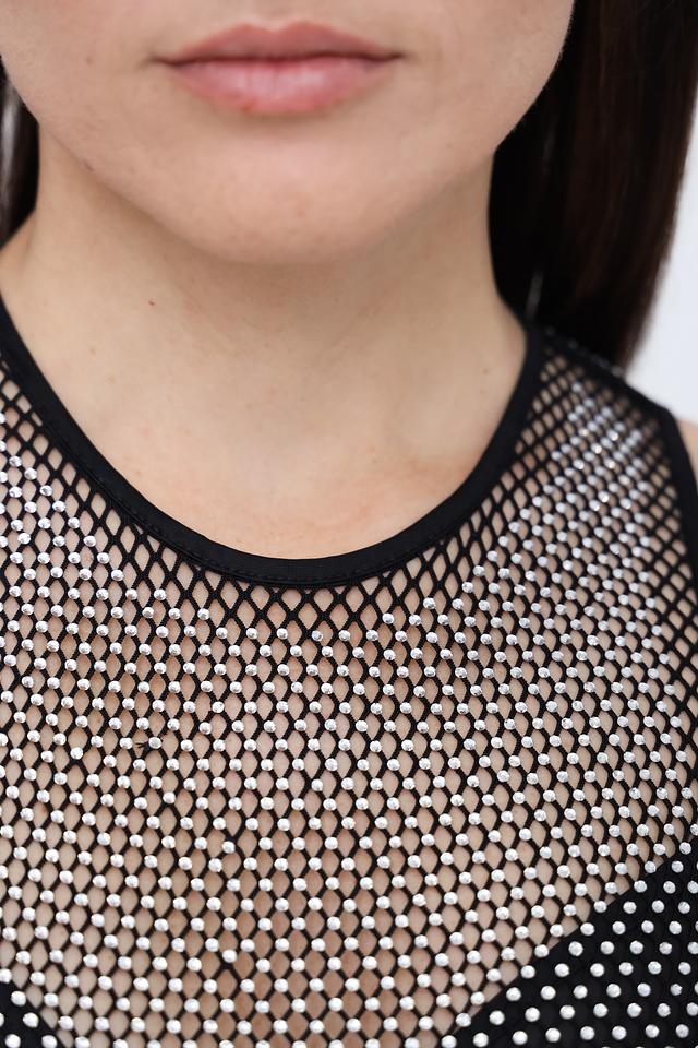 Мини-длина делает платье идеальным выбором для вечеринок и особых случаев. Вырез горловины и проймы выполнены из эластичной сетки, обеспечивая комфортную посадку. Благодаря своему дизайну, платье можно сочетать с жакетом или кардиганом для создания более сдержанного образа.