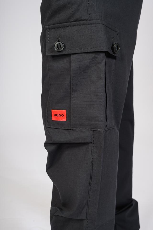 Представляем брюки карго от известного бренда Hugo. Эта модель выполнена в классическом чёрном цвете и станет отличным дополнением к вашему повседневному гардеробу.