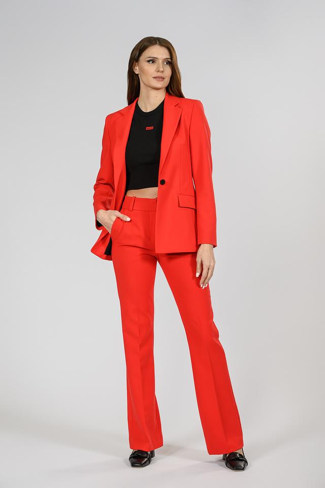 Эти брюки от Hugo – отличный выбор для тех, кто ценит элегантность и комфорт. Яркий красный цвет делает их заметной частью гардероба, а прямой крой обеспечивает свободу движений.