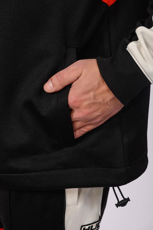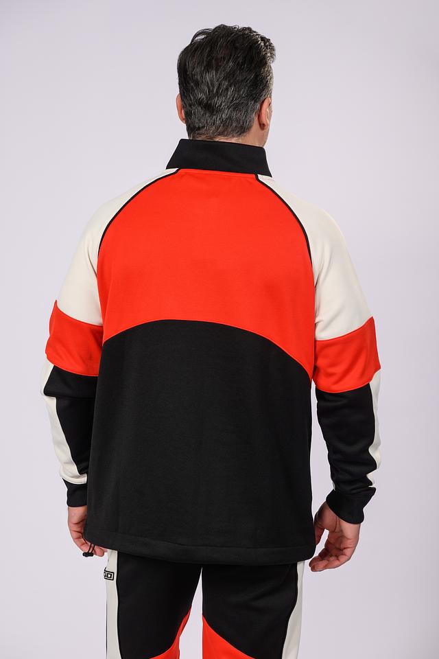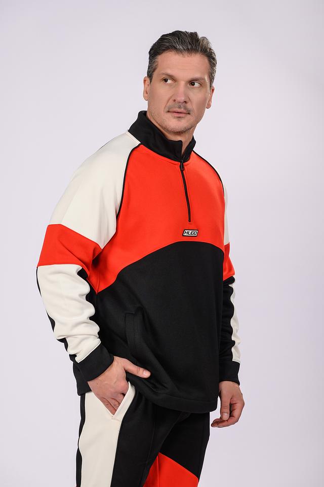 Мужской пуловер Hugo яркого дизайна, сочетающий в себе чёрный, красный, белый и бежевый цвета. Модель с молнией и логотипом бренда на груди станет стильным дополнением к вашему гардеробу. Состав: полиэстер 70%, хлопок 30%