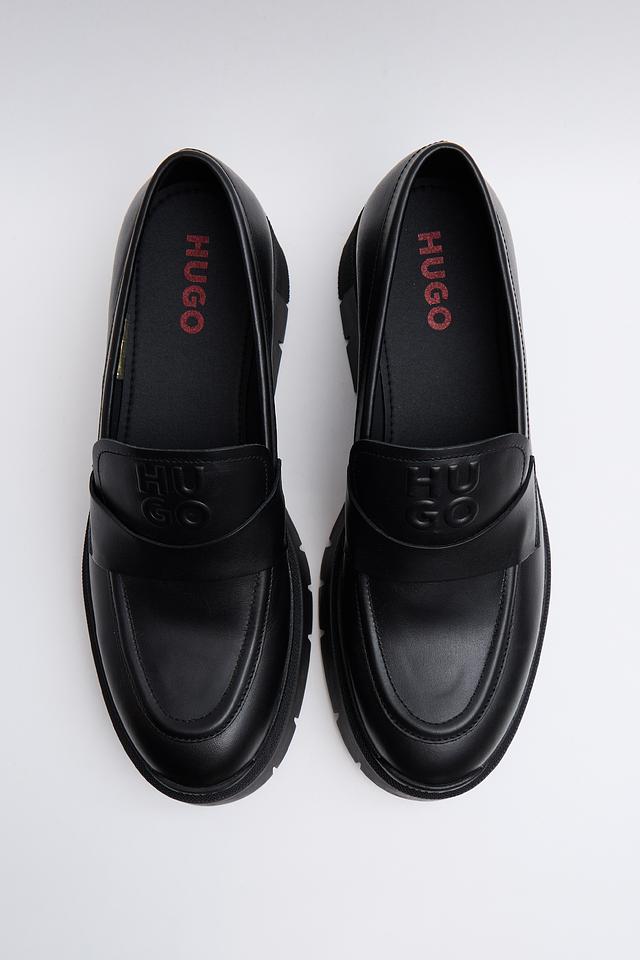 Верх лоферов изготовлен из высококачественной натуральной кожи, что обеспечивает комфорт и долговечность. Массивная подошва добавляет обуви современный акцент и обеспечивает устойчивость при ходьбе. Логотип Hugo, расположенный на верхней части лоферов, подчеркивает принадлежность к бренду и добавляет узнаваемости.