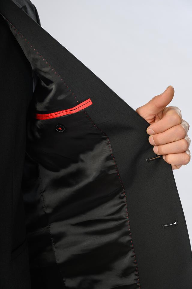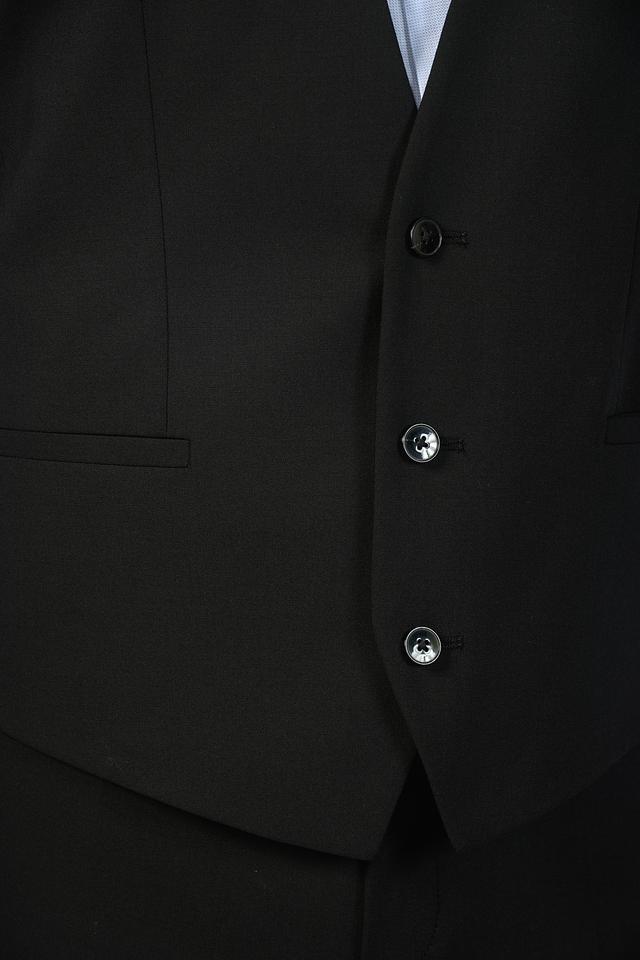 Мужской классический костюм Hugo чёрного цвета, выполнен из сочетания шерсти, полиэстера и эластана. Идеальный выбор для создания элегантного и стильного образа. Состав: полиэстер 52%, шерсть 43%, эластан 5%