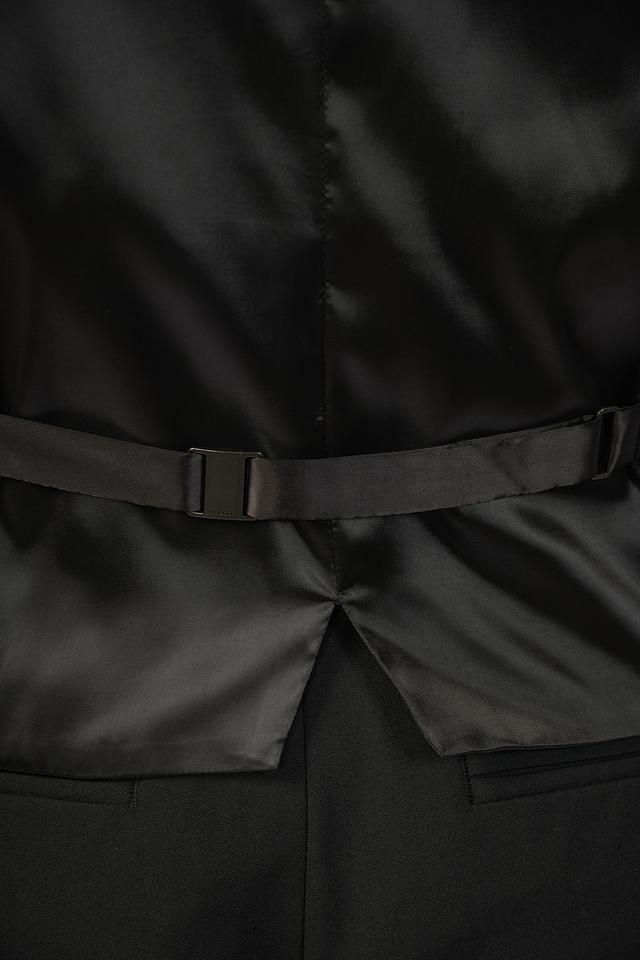 Костюм состоит из пиджака и брюк классического кроя. Пиджак застегивается на две пуговицы, имеет стандартные лацканы и функциональные карманы. Брюки имеют классический крой и стандартную посадку. На левом лацкане пиджака размещена небольшая фирменная деталь бренда.
