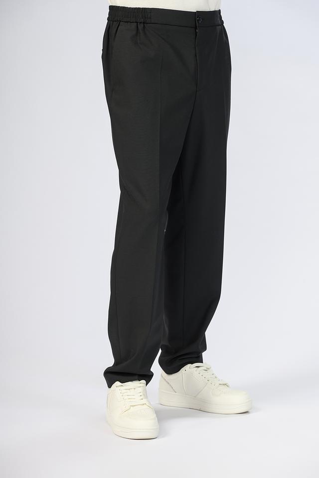 Мужские брюки Hugo черного цвета – это сочетание комфорта и элегантности. Модель выполнена из смесовой ткани с добавлением шерсти и эластана, что обеспечивает приятные тактильные ощущения и свободу движений. Брюки с эластичным поясом и классическим кроем. Состав: полиэстер 52%, шерсть 43%, эластан 5%