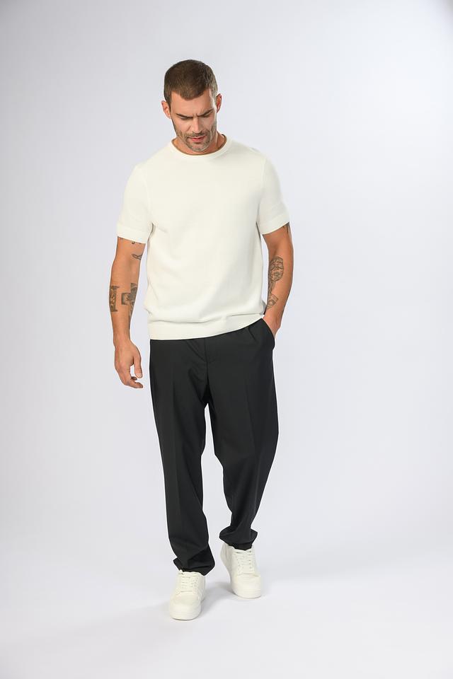 Особенности модели: эластичный пояс с регулирующим шнурком, классический крой, два боковых кармана, задние карманы с клапанами. Брюки идеально подойдут для создания как повседневных, так и более формальных образов.