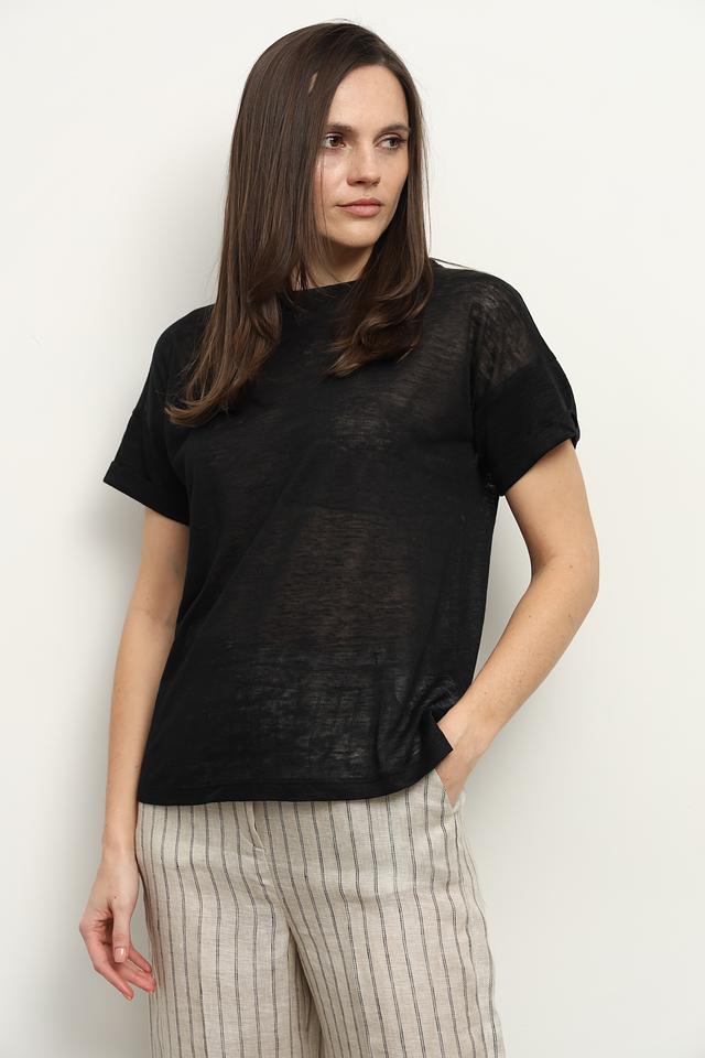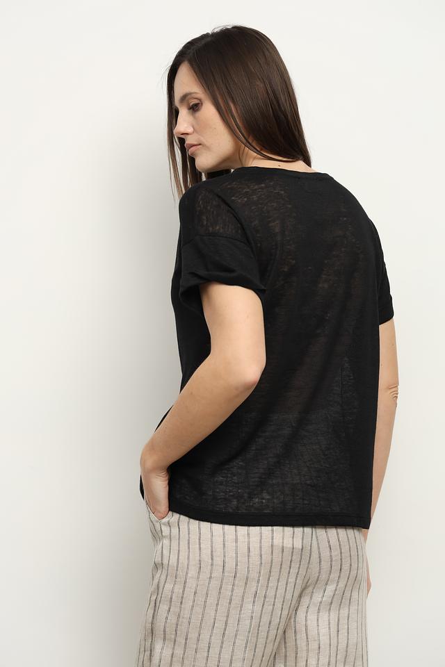 Женская футболка i Blues черного цвета выполнена из 100% льна. Модель имеет прямой крой и короткий рукав, что обеспечивает комфорт в жаркую погоду. Лёгкая и дышащая ткань делает эту футболку идеальным выбором для повседневной носки. Состав: лен 100%