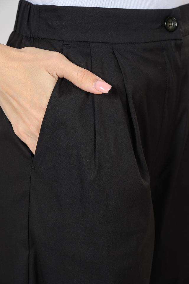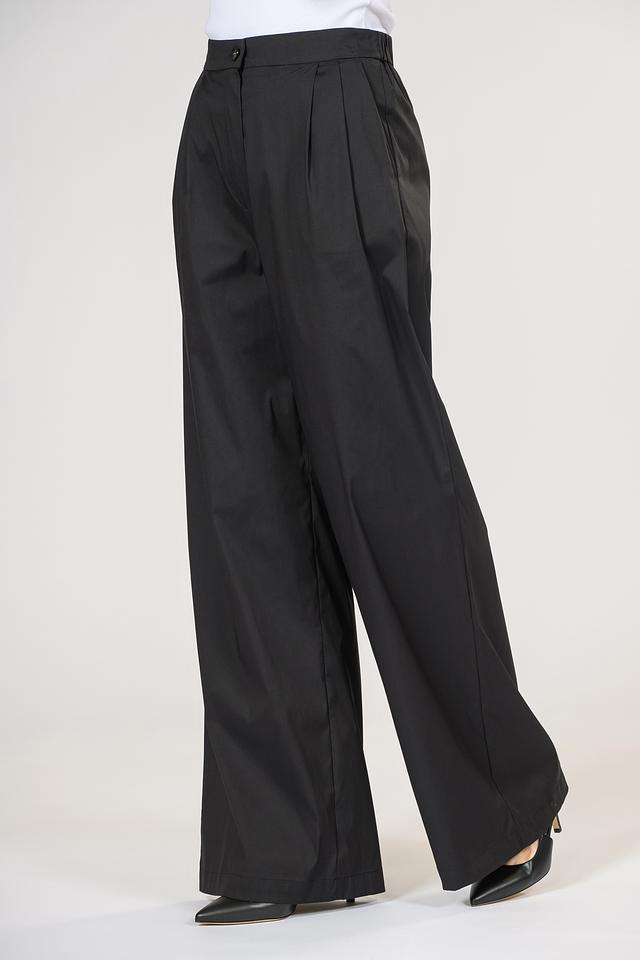 Чёрные брюки палаццо от i Blues из хлопка с добавлением полиамида и эластана. Модель с завышенной талией и широкими штанинами, обеспечивающими комфорт и свободу движений. Состав: хлопок 70%, полиамид 25%, эластан 5%