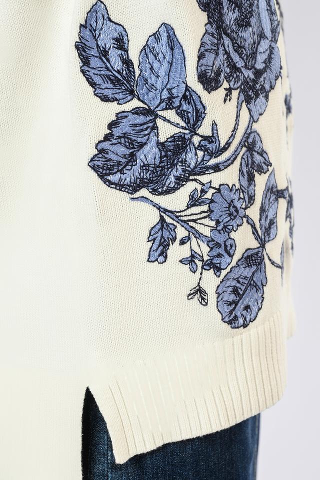 Этот женский жилет от i Blues выполнен в кремовом цвете и украшен эффектным цветочным принтом в синих тонах. Модель имеет V-образный вырез и короткие рукава, что делает ее идеальным выбором для теплой погоды.