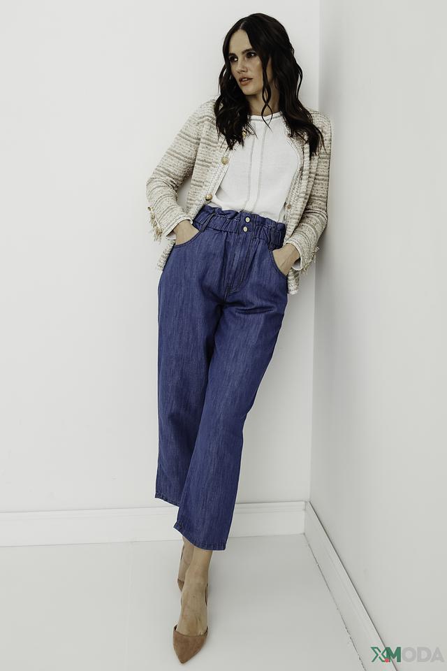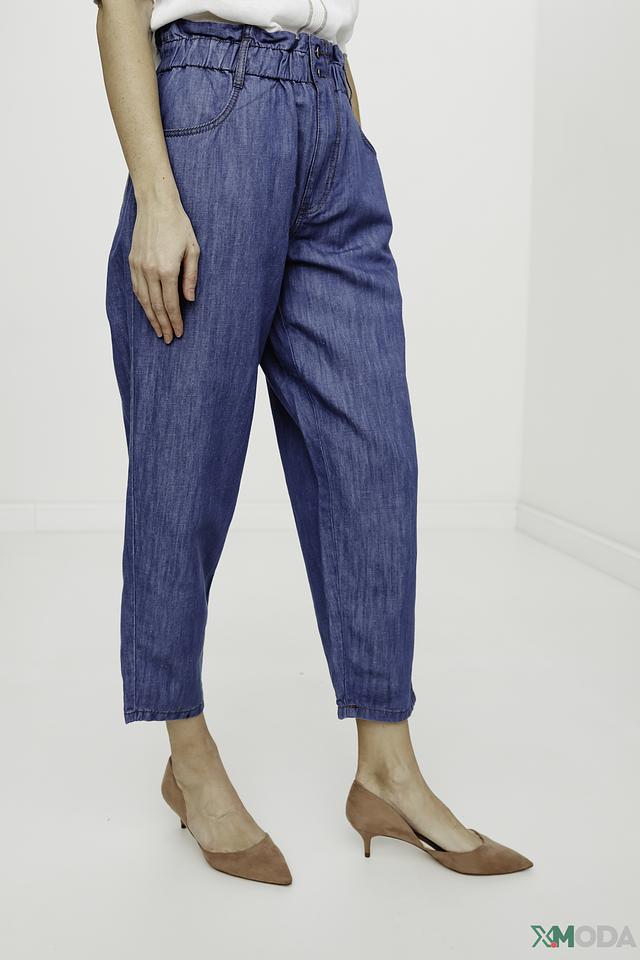 Джинсовые брюки i Blues синего цвета с высокой посадкой и утягивающим поясом. Модель выполнена из хлопка с добавлением льна, что обеспечивает комфорт и воздухопроницаемость. Идеальный выбор для создания стильного и удобного образа. Состав: хлопок 58%, лен 42%