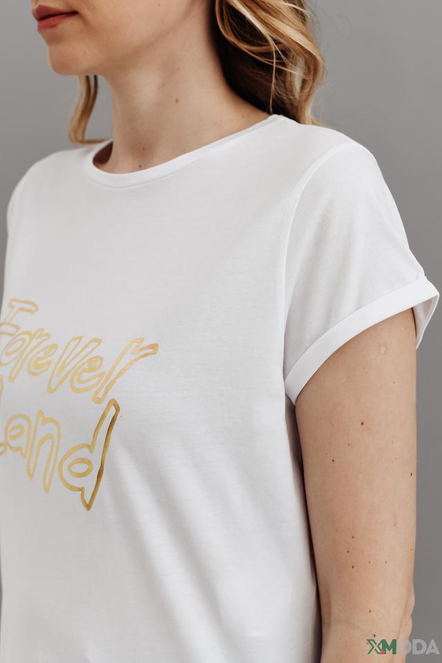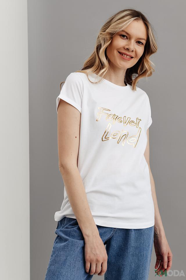 Белая футболка от i Blues с золотистой надписью "Forever Land" станет отличным дополнением к вашему образу. Модель из 100% хлопка обеспечивает комфорт и удобство в носке. Состав: хлопок 100%
