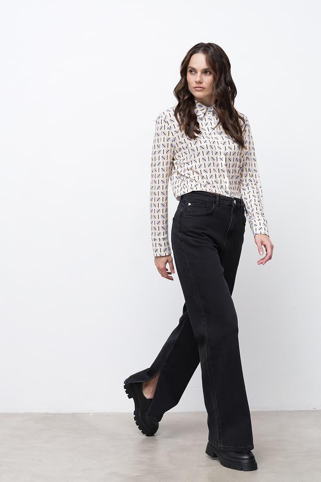 Брюки изготовлены из высококачественного хлопка с добавлением 1% эластана, что обеспечивает комфорт в носке и хорошую посадку по фигуре. Высокая посадка визуально удлиняет ноги и подчеркивает талию.