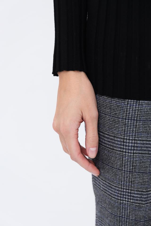 Модель имеет классический крой с высоким воротом и длинными рукавами. Оригинальный акцент – разрез по боку, который добавляет образу динамичности и лёгкости.