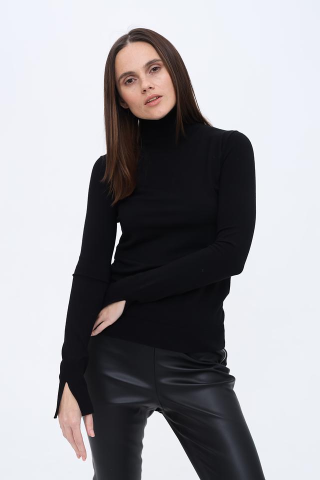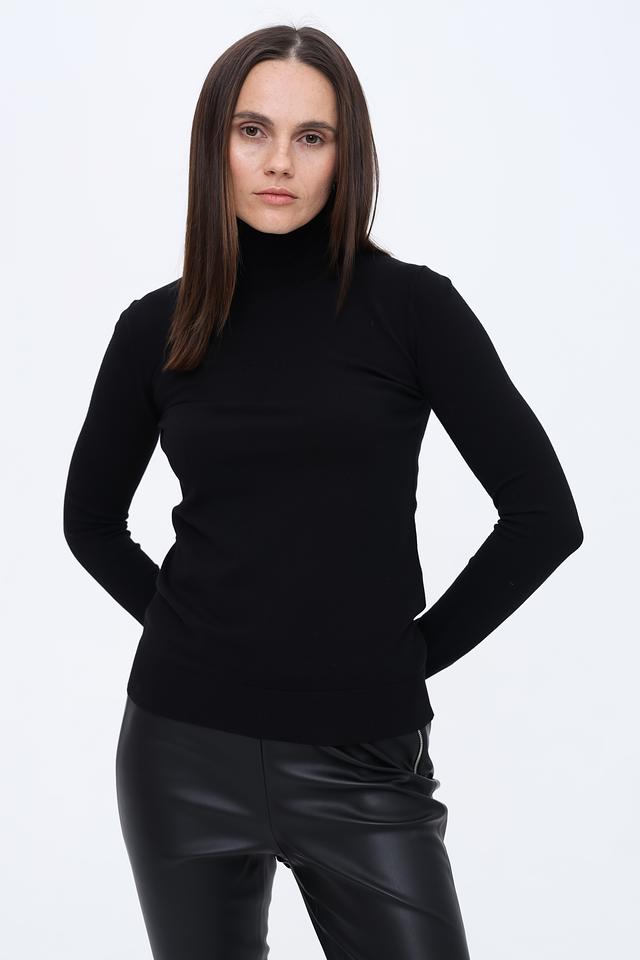 Облегающий силуэт подчеркивает достоинства фигуры, а высокий воротник добавляет элегантности. Водолазку можно носить как самостоятельный элемент одежды, так и в качестве базового слоя под пиджаки, кардиганы или платья.