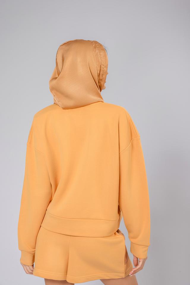 Женский джемпер Ice Play абрикосового цвета с застежкой-молнией и капюшоном. Модель выполнена из мягкого хлопка с добавлением полиэстера, имеет удобный крой и стильный дизайн с контрастными вставками. Состав: хлопок 63%, полиэстер 37%