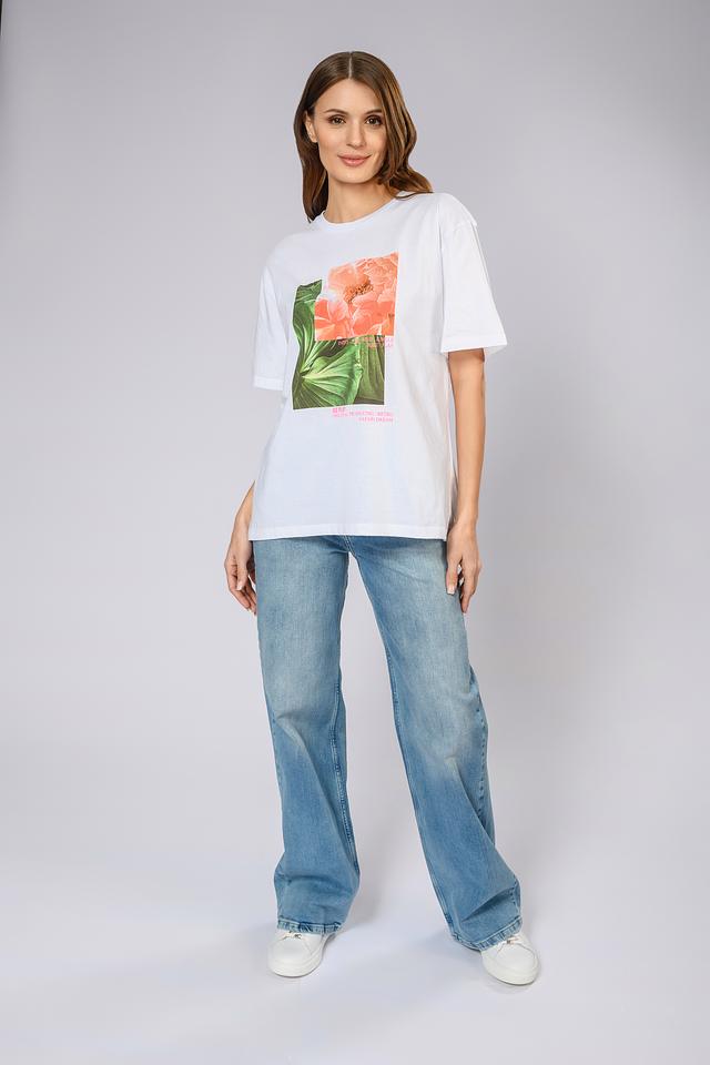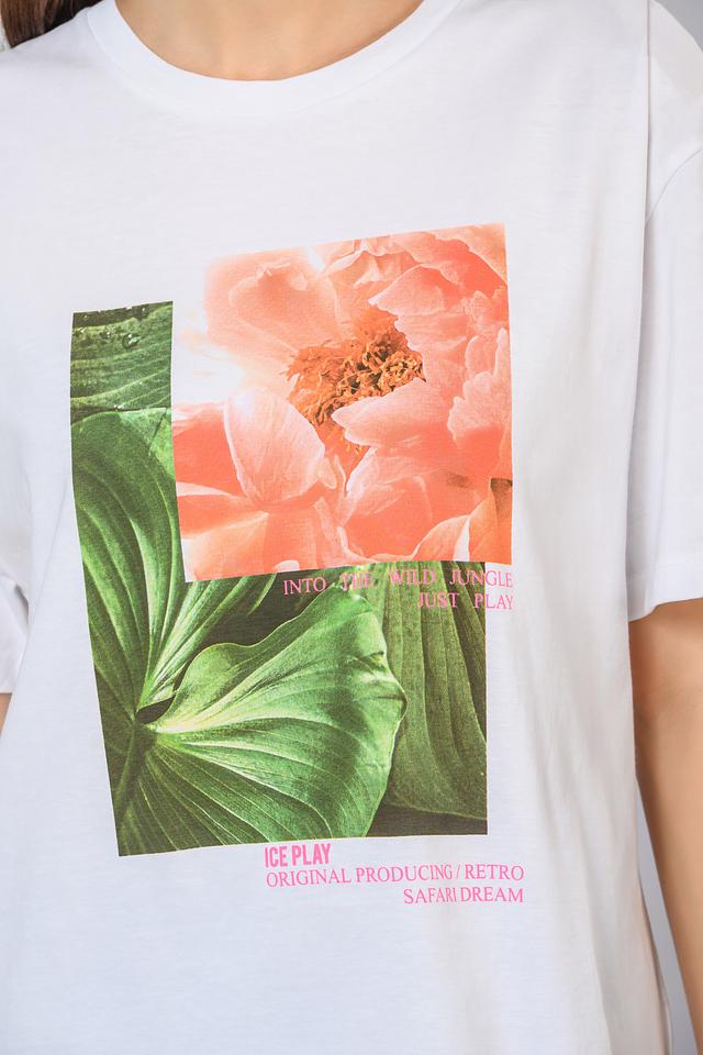 Белая футболка Ice Play с ярким цветочным принтом – стильный выбор для повседневного образа. Модель свободного кроя обеспечивает комфорт и свободу движений, а оригинальный дизайн добавит индивидуальности. Состав: