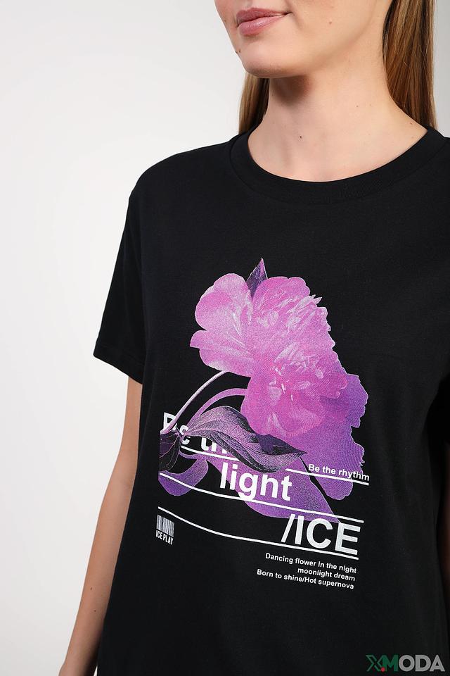 Женская футболка Ice Play чёрного цвета с ярким цветочным принтом – стильный выбор для повседневного образа. Изготовлена из 100% хлопка, обеспечивающего комфорт и воздухопроницаемость. Состав: хлопок 100%