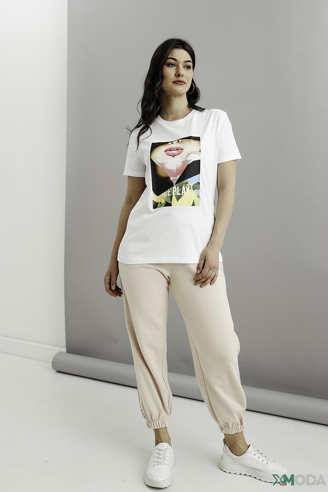 Особенностью данной модели является яркий и привлекательный принт на лицевой стороне, который добавляет образу индивидуальности и стиля. Футболка имеет классический прямой крой, который подходит для любой фигуры.