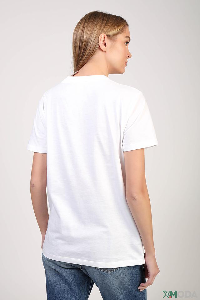 На передней части футболки расположен стильный логотип бренда, выполненный в серебристо-серых тонах, что придает ей современный и узнаваемый вид. Крой футболки прямой, что обеспечивает свободу движений и подходит для различных типов фигур.