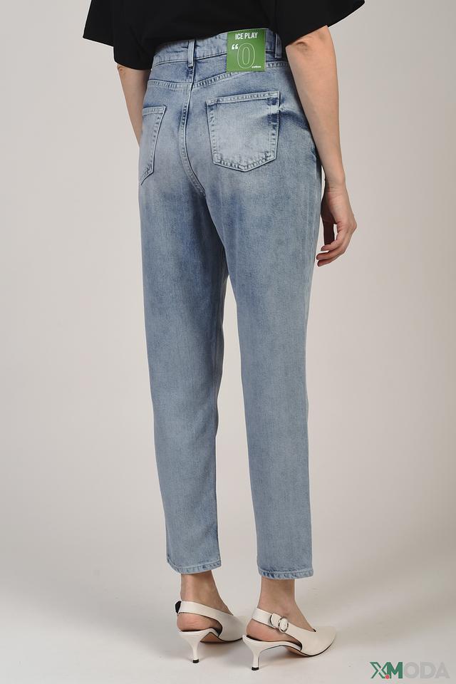 Женские джинсы Ice Play голубого цвета в стиле casual с эффектом потертостей и высокой посадкой. Модель выполнена из мягкой и приятной к телу ткани, обеспечивающей комфорт в течение дня. Состав: вискоза 50%, луоселл 50%
