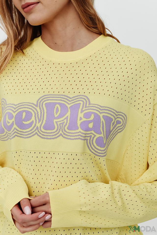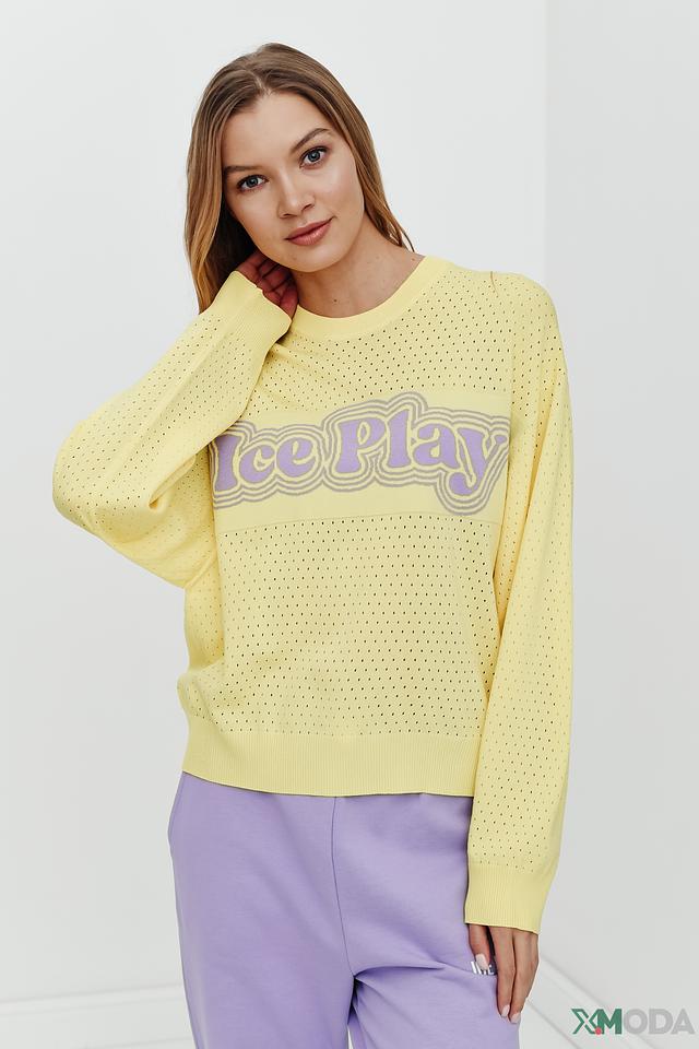 Женский джемпер Ice Play жёлтого цвета с перфорацией и логотипом на груди. Модель выполнена из мягкой вискозы с добавлением полиамида, обеспечивающей комфорт и износостойкость. Состав: вискоза 75%, полиамид 25%