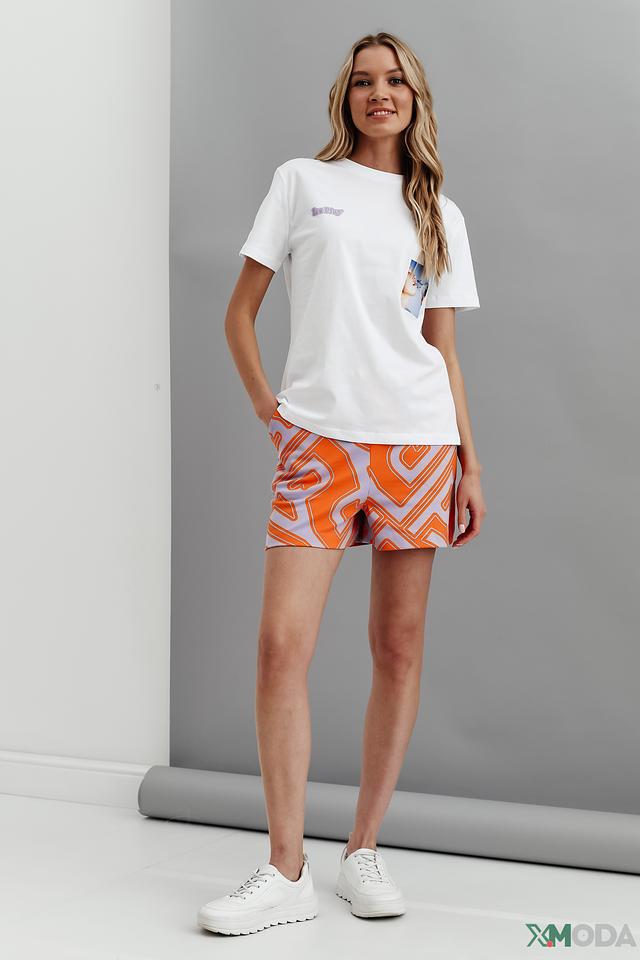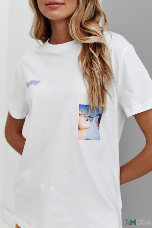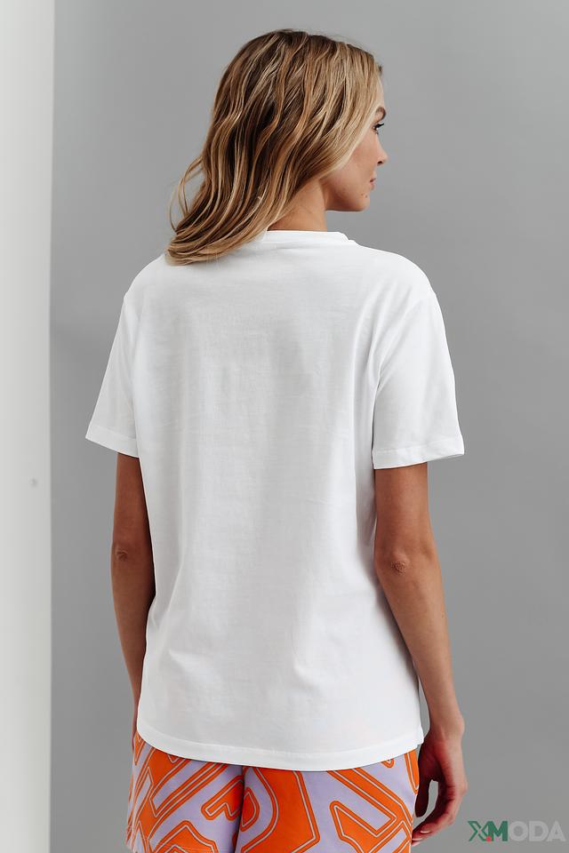 Футболка имеет прямой крой и короткие рукава, что делает ее идеальной для теплой погоды. Главной особенностью модели является яркий принт на передней части, который добавляет ей индивидуальности и стиля.