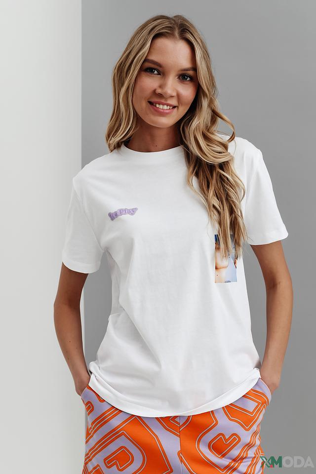 Белая футболка Ice Play женского кроя с ярким принтом на передней части. Изготовлена из 100% хлопка, обеспечивающего комфорт и воздухопроницаемость. Стильный и удобный вариант для повседневного образа. Состав: хлопок 100%