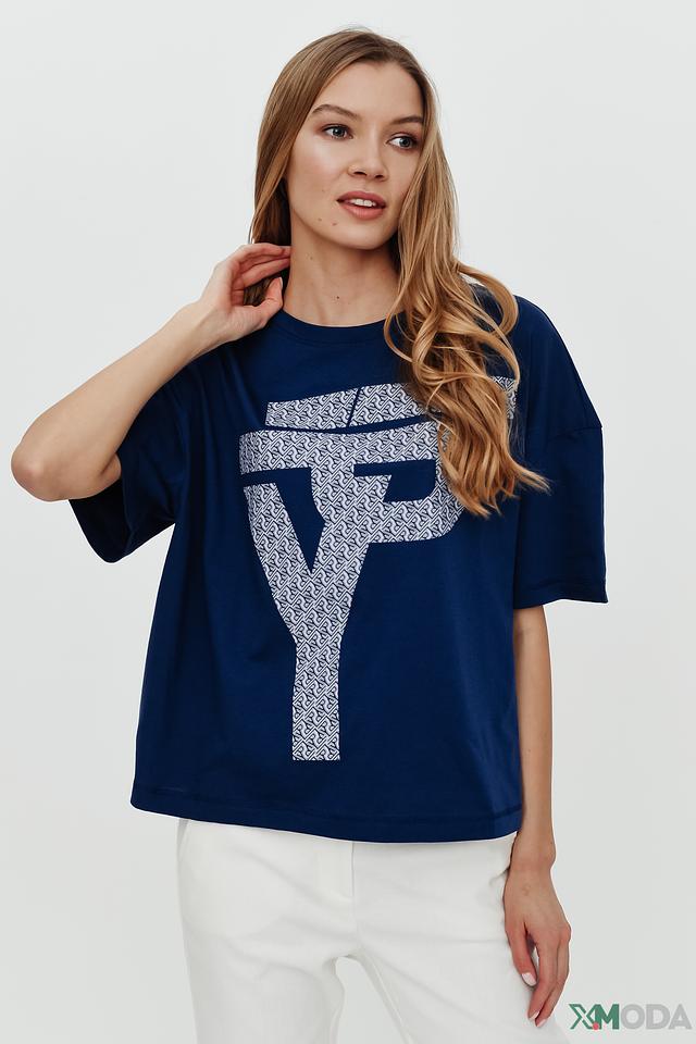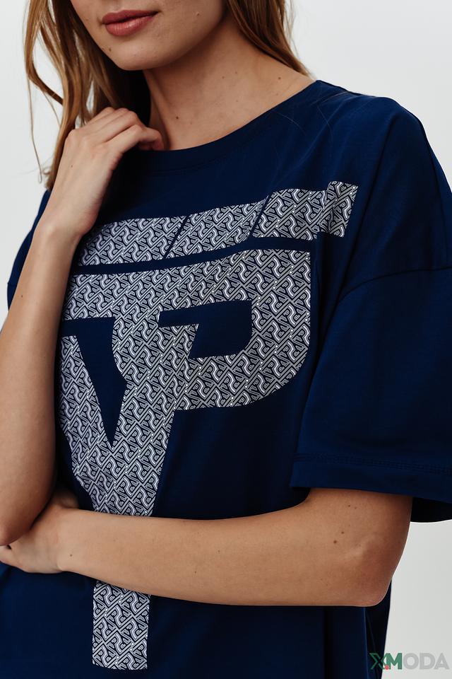 Футболка имеет прямой крой и свободную посадку, что делает ее удобной в носке. Особенностью модели является крупный логотип бренда, выполненный в белом цвете, который придает ей современный и узнаваемый вид.
