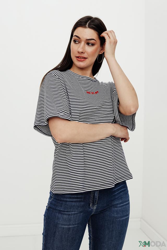Футболка имеет свободный крой, который обеспечивает комфорт и свободу движений. Короткие рукава и округлый вырез горловины делают ее идеальным выбором для повседневной носки.