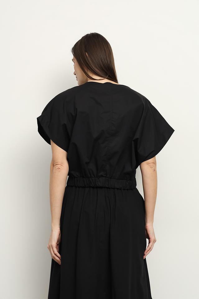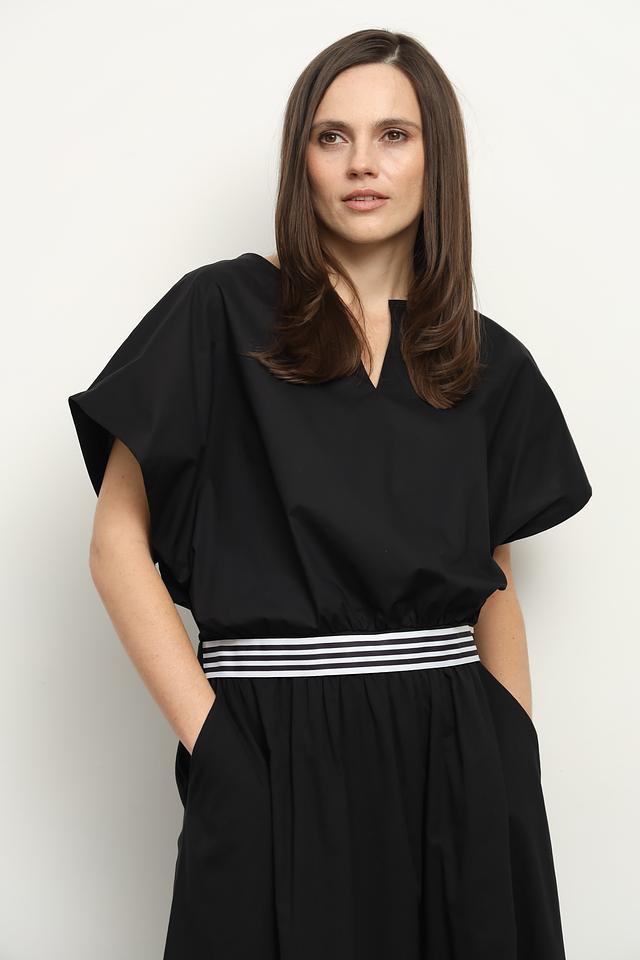 Чёрная блуза Icona с короткими рукавами-крыльями и эластичным поясом. Изготовлена из 100% хлопка, обеспечивая комфорт и воздухопроницаемость. Стильный и лаконичный дизайн. Состав: хлопок 100%