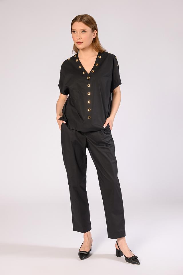 Чёрные брюки Icona из 100% хлопка — это стильное и комфортное решение для создания повседневных образов. Прямой крой и эластичный пояс обеспечивают удобную посадку по фигуре. Состав: хлопок 100%
