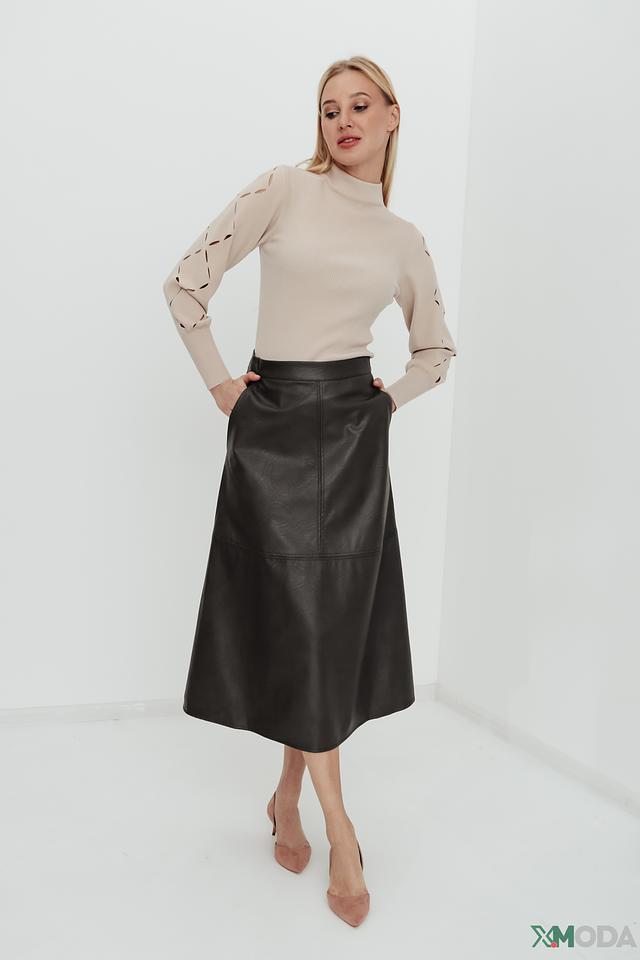 Чёрная юбка Icona из экокожи – стильный и универсальный элемент гардероба. Модель выполнена из качественного материала, имитирующего кожу, и имеет длину миди. Подчеркнёт талию и добавит образу изысканности. Состав: полиуретан 50%, вискоза 50%