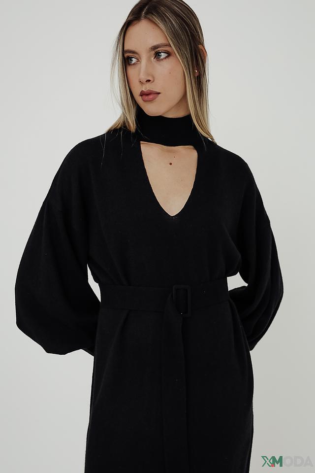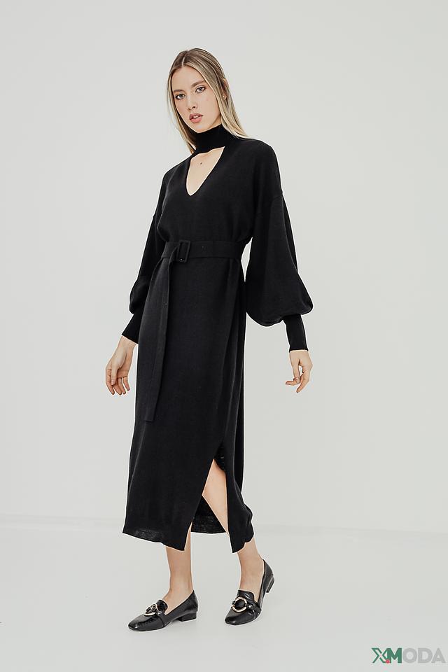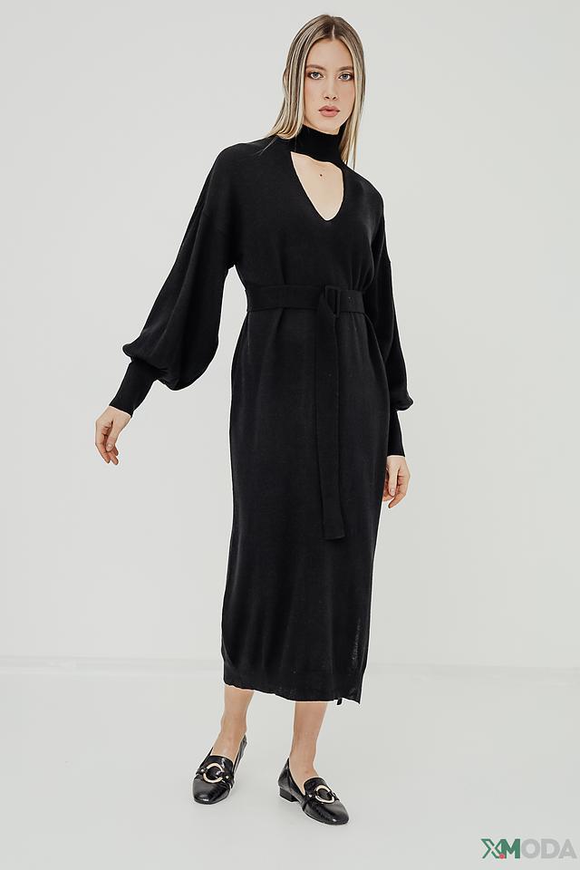 Платье Icona вязаное черное с поясом