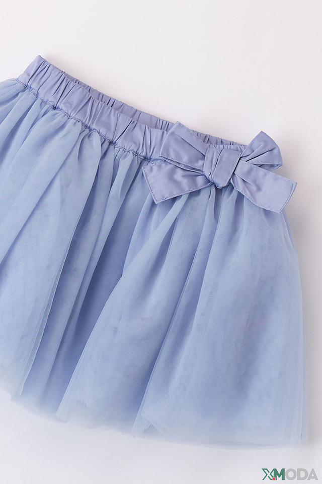 Юбка имеет эластичный пояс, обеспечивающий комфортную посадку. На талии расположена декоративная повязка с бантом, которая добавляет образу девочки изящества и очарования.