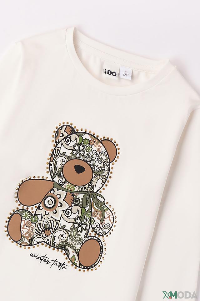 Этот милый джемпер от Ido станет прекрасным дополнением к гардеробу вашей девочки. Выполненный в нежном молочном цвете, он украшен ярким и забавным принтом медвежонка, что делает его особенно привлекательным для юных модниц.