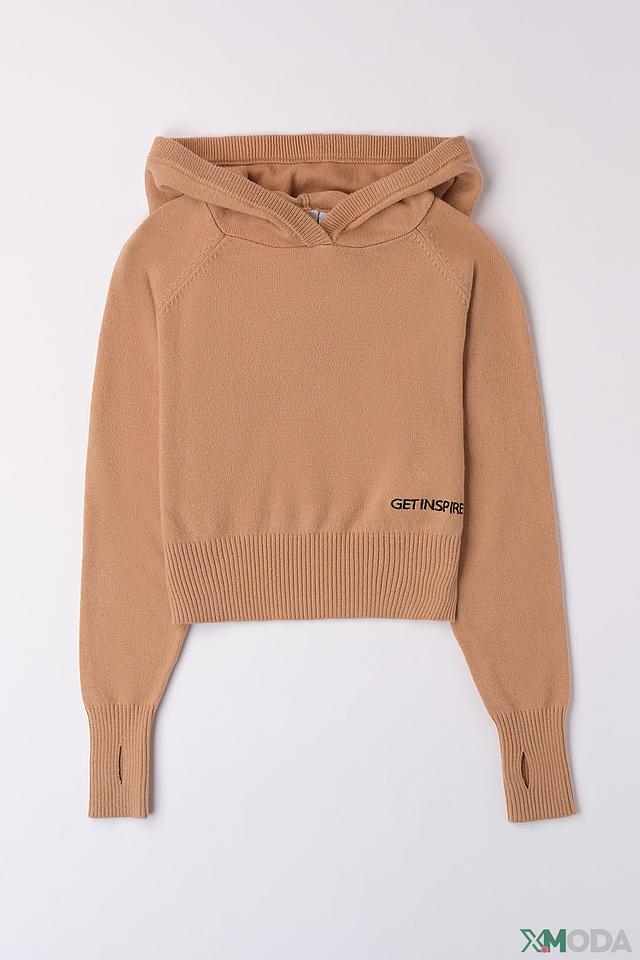 Бежевый джемпер от Ido с капюшоном – удобная и стильная модель для юных модниц. Изготовлен из мягкого трикотажа с добавлением хлопка, что обеспечивает комфорт в носке. Декорирован надписью "GET INSPIRE". Состав: нейлон 44%, акрил 29%, хлопок 26%, эластан 1%