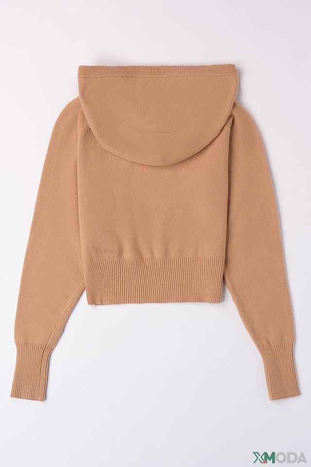 Джемпер имеет удобный капюшон и слегка укороченный крой, что делает его актуальным и современным. Рукава и нижняя часть изделия выполнены в рубчик, что добавляет текстуры и интерес к образу.