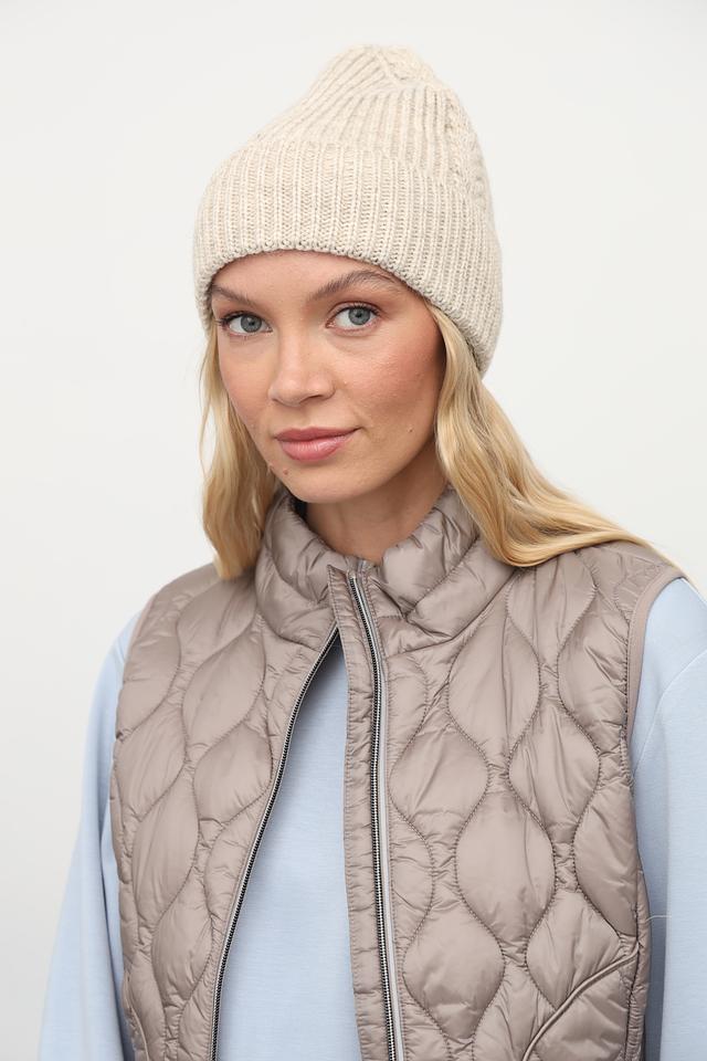 Бежевая шапка Julia Florenzi из мягкого трикотажа — стильный и комфортный аксессуар для холодной погоды. Модель выполнена в лаконичном дизайне с текстурной вязкой, обеспечивающей тепло и уют. Состав: шерсть 50%, акрил 50%