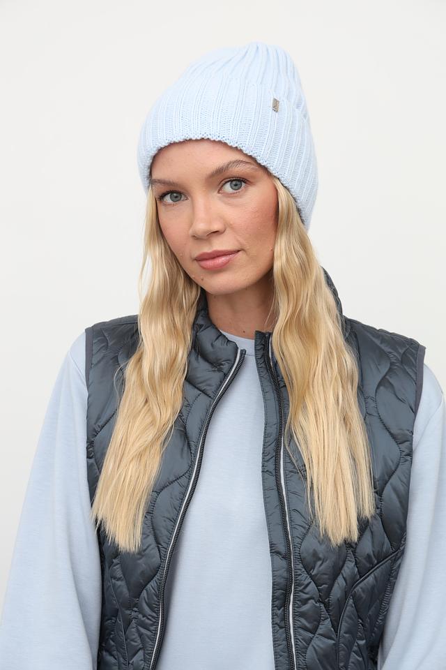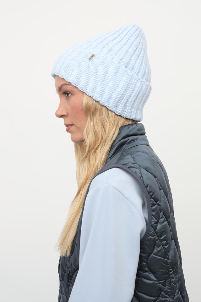 Голубой цвет и рельефное плетение придают шапке особый шарм. Аксессуар плотно прилегает к голове, защищая от ветра и мороза. Небольшой металлический логотип бренда Deluxe добавляет шапке изысканности.