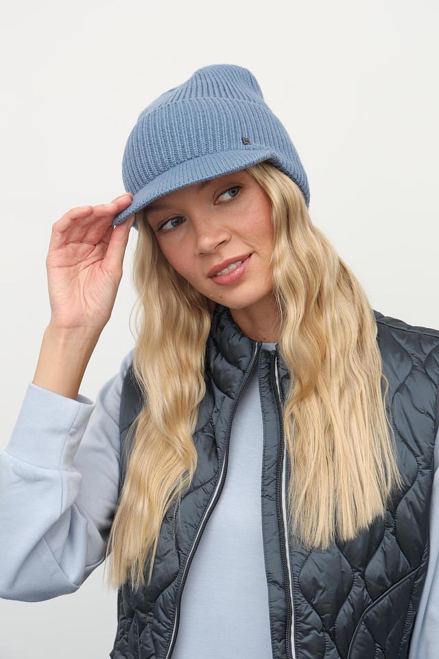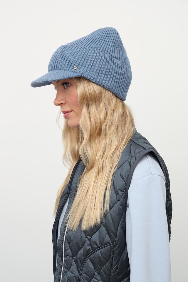 Стильная шапка Julia Florenzi голубого цвета с небольшим козырьком. Изготовлена из мягкой вискозы с добавлением кашемира и полиамида для комфорта и тепла. Идеальный выбор для создания модного образа. Состав: вискоза 55%, нейлон 20%, полиамид 20%, кашемир 5%