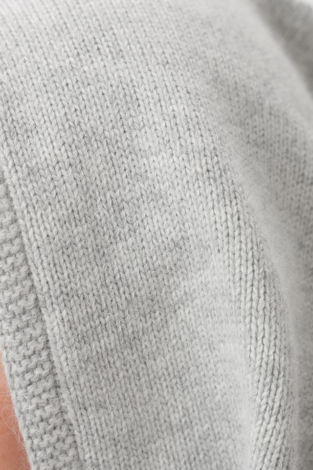 Капюшон имеет удобный капюшон и выполнен из высококачественного трикотажа, сочетающего в себе шерсть (10%), нейлон (40%), вискозу (30%) и ангору (20%). Такой состав обеспечивает мягкость, тепло и комфорт в носке.